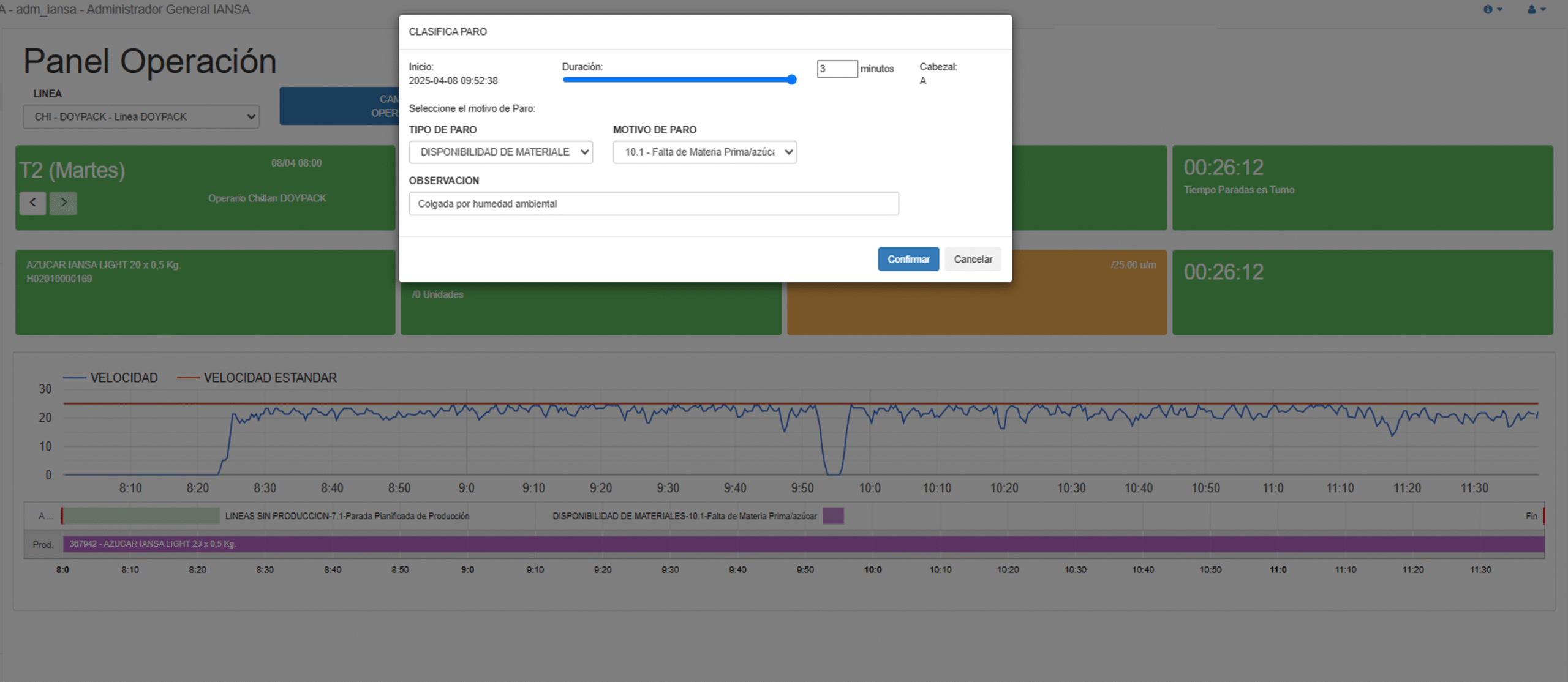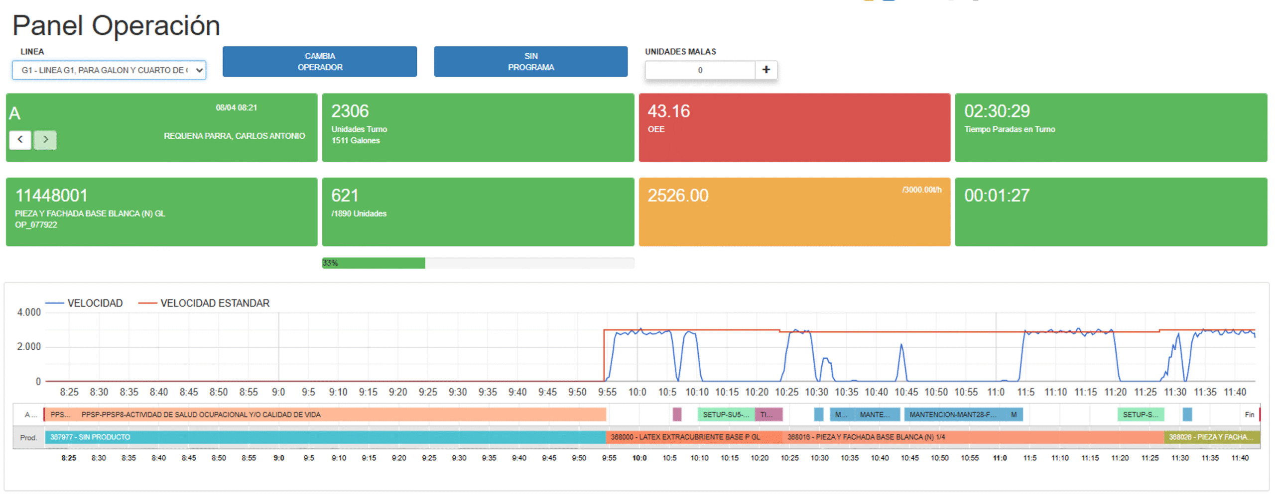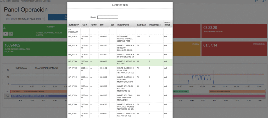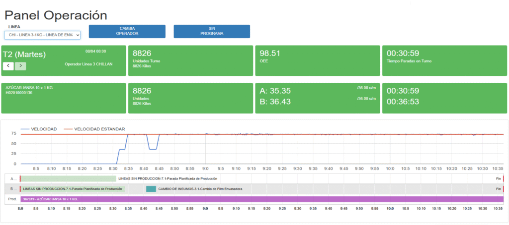 Panel de operación fácil de utilizar y entender por el operador para el cumplimiento del programa de producción, registrando las pérdidas en tiempo real.